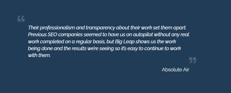 Big Leap and Absolute Air conducted keyword research to identify content gaps. We then drove a content marketing campaign where we ideated several blog topic ideas based on keyword research data, audience FAQs, and trending topics.